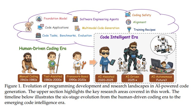 Software used to be humanity’s most carefully handcrafted creation. Lines of logic flowed from human minds into text editors, shaped by discipline, intuition, and endless debugging cycles. But as we read through the sweeping 300 page survey on code large language models, a deeper truth emerges. In the span of only a few years, the craft of programming has begun to shift from human authored to machine reasoned. The transformation is not the polite automation of simple tasks. It is a revolution occurring quietly inside GPUs, where models digest entire repositories and build a latent understanding of algorithms, patterns, and the physics of software itself.